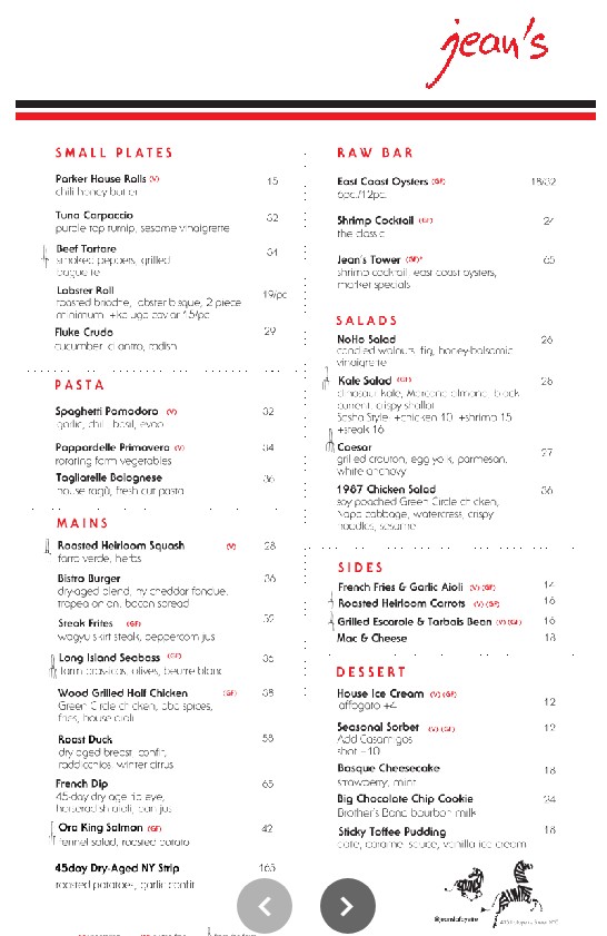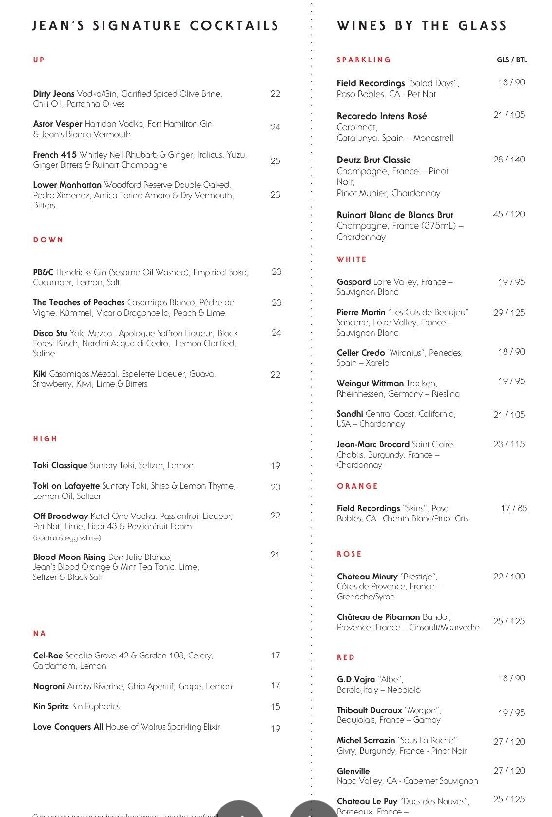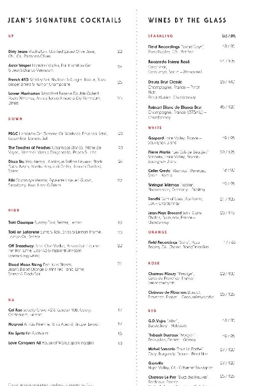 At Jean's Restaurant, we take pride in offering a sophisticated dining experience in the heart of NoHo, New York. Our menu features a blend of creative dishes, expertly crafted to cater to the most refined palates. Whether you're here for a casual meal or a special occasion, our welcoming atmosphere and exceptional service promise to make your visit unforgettable. Join us today and explore our selection of flavorful dishes, all served with a touch of elegance and warmth that defines Jean's. Book your table now for an unforgettable experience!